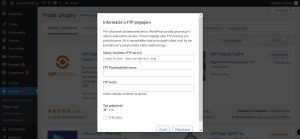 Pri inštalácii témy, pluginu sa vyžadujú FTP údaje