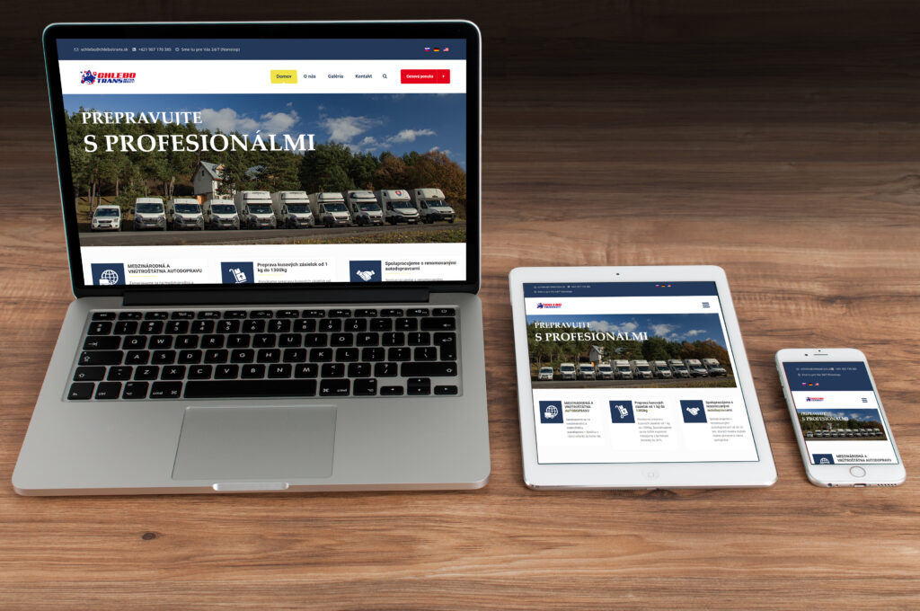 Web je plne responzívny, takže zákazníci majú pohodlný prístup k informáciám z mobilu, tabletu aj počítača. Vizuálne prvky, fotografie vozového parku a prehľadná navigácia podporujú rýchlu orientáciu a komunikáciu so spoločnosťou, vrátane možnosti požiadať o cenovú ponuku.